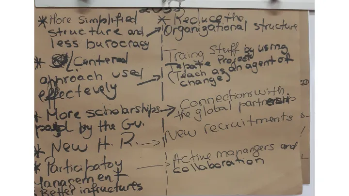 The basic idea of working on scenarios was to describe the situation at the university in the year 2035, and then to define the most important actions – what we need to do - in order to reach the desirable scenario.