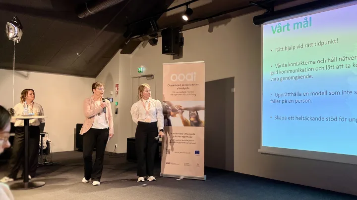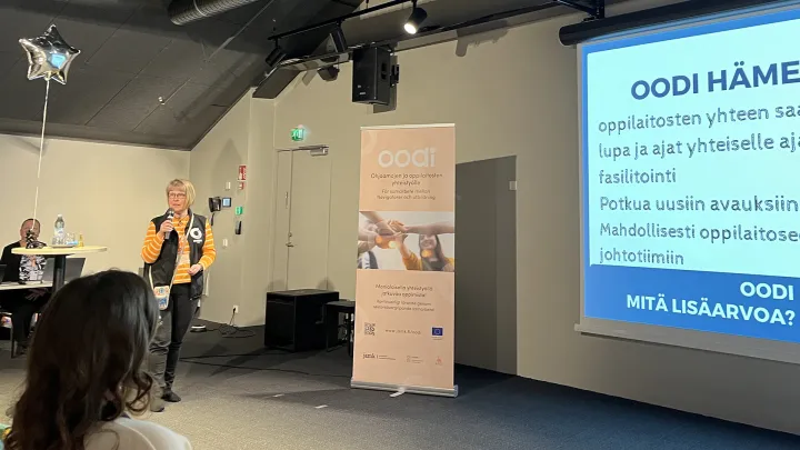 Tapahtuman juontajat, Oodi-asiantuntijat, Camilla Stenbäck Åbo Akademista ja Jaakko Helander Hämeen ammattikorkeakoulusta pääsivät lausumaan omat tervetulotoivotuksensa järjestäjien puolesta.