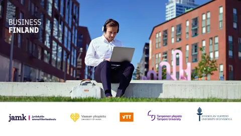 Kuvassa vasemmalta oikealle: Anna-Mari Simunaniemi (Jamk), Jenni Virtaluoto (Jyväskylän yliopisto), Mikko Helminen (Coresbond), Liinamaaria Hakola (Jamk) ja Janne Ikola (Aava & Bang).