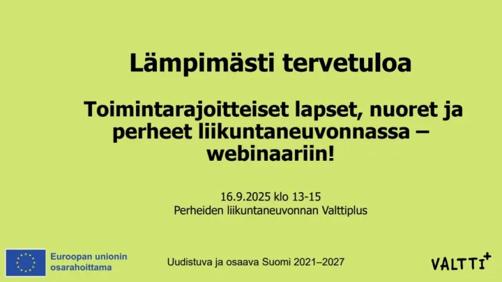 Toimintarajoitteiset lapset, nuoret ja perheet liikuntaneuvonnassa - Valttiplus-webinaari 16.9.2025