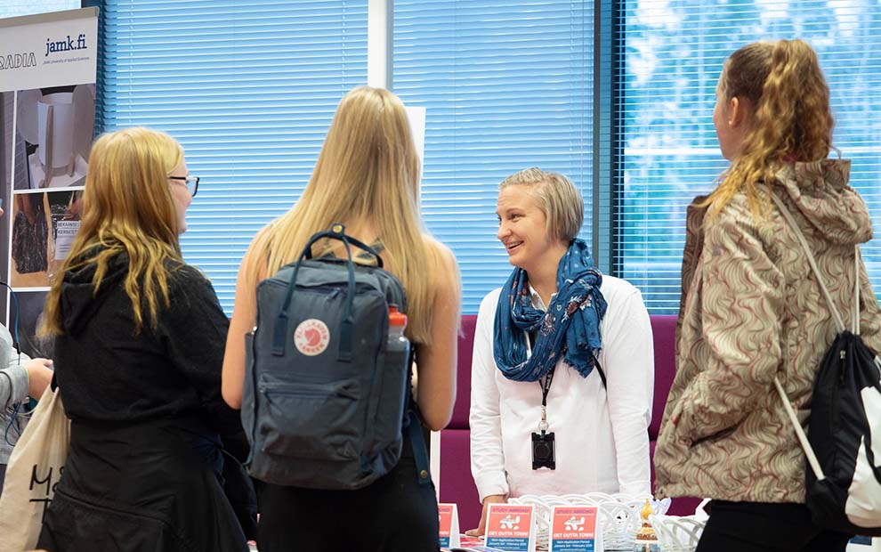 Tietoiskuissa eri alojen opiskelijat kertovat kokemuksiaan opinnoista. Myös opiskelijakunta JAMKO esittäytyy. Lisäksi tietoa on tarjolla mm. avoimen AMK:n polkuopinnoista, verkko-opintomahdollisuuksista ja Jyväskylän EduFutura-oppilaitosyhteistyöstä. Hakijapalvelut ovat paikalla auttamassa hakemiseen liittyvissä kysymyksissä ja kansainvälistymispalvelut vaihto-opiskelumahdollisuuksista.